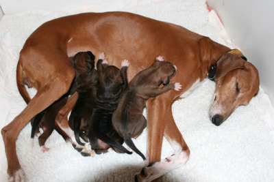 Rania und die vier Welpen.