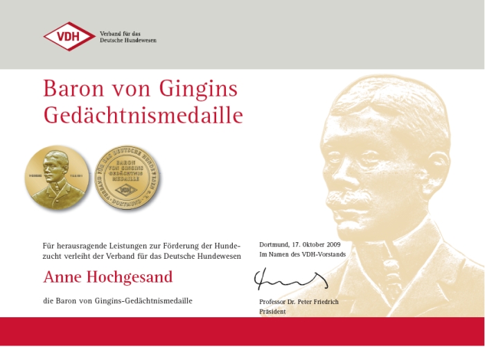 durch den Verband für das Deutsche Hundewesen gewürdigt.